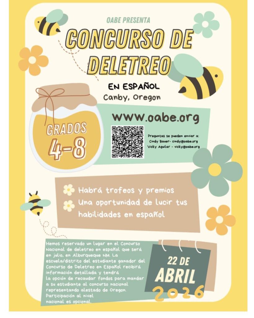Los estudiantes bilingües de programas de doble inmersión en Oregón ya pueden participar en el Concurso Anual de Deletreo en Español. Esta es una oportunidad fantástica para que los estudiantes de 4.º a 8.º grado demuestren sus habilidades y compitan con sus compañeros de todo el estado de Oregón.